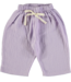 De Pequeno Tocon baby pants muslin lilac combineert comfort met een zomerse kleur. Dit broekje is gemaakt van muslin, een ademende hydrofiele katoen met de kenmerkende lichte textuur. De stof voelt zacht aan op de huid en is ideaal voor warme dagen.