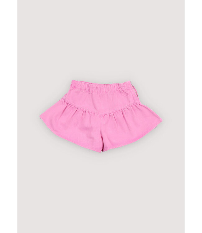 Deze gewassen denim short is allesbehalve standaard. Dankzij de schuin gesneden pijpen en het volumineuze ontwerp ontstaat een fris en speels silhouet dat direct opvalt. De subtiele rimpelingen (ruching) bij de taille geven de broek een modieuze twist, terwijl de blinde rits aan de zijkant zorgt voor een gladde en mooie pasvorm. Als lief detail vind je het kenmerkende TNS-hartje geborduurd op de zijkant. Een perfect item van 100% katoen om stijlvol en comfortabel de zomer in te gaan.