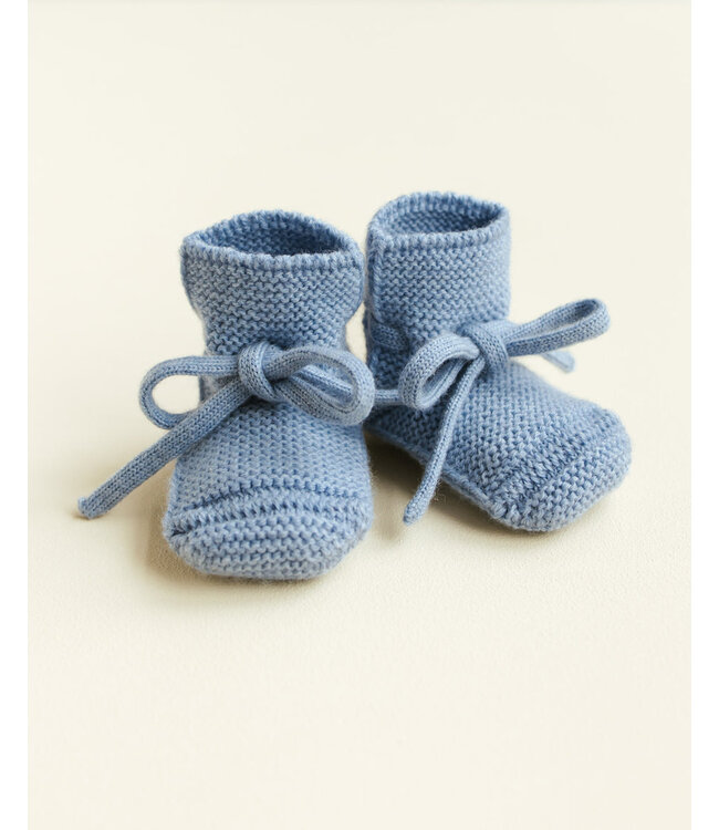 Deze Knit baby booties van Hvid staan bekend om hun uitstekende pasvorm. Dankzij het unieke hielontwerp en de aangenaaide veters blijven de slofjes stevig aan de voetjes zitten. De naadloos gebreide merinowol is temperatuurregulerend, waardoor de voetjes in elk seizoen comfortabel warm blijven. De slofjes worden geleverd in een charmant katoenen zakje, wat ze tot een ideaal kraamcadeau maakt.