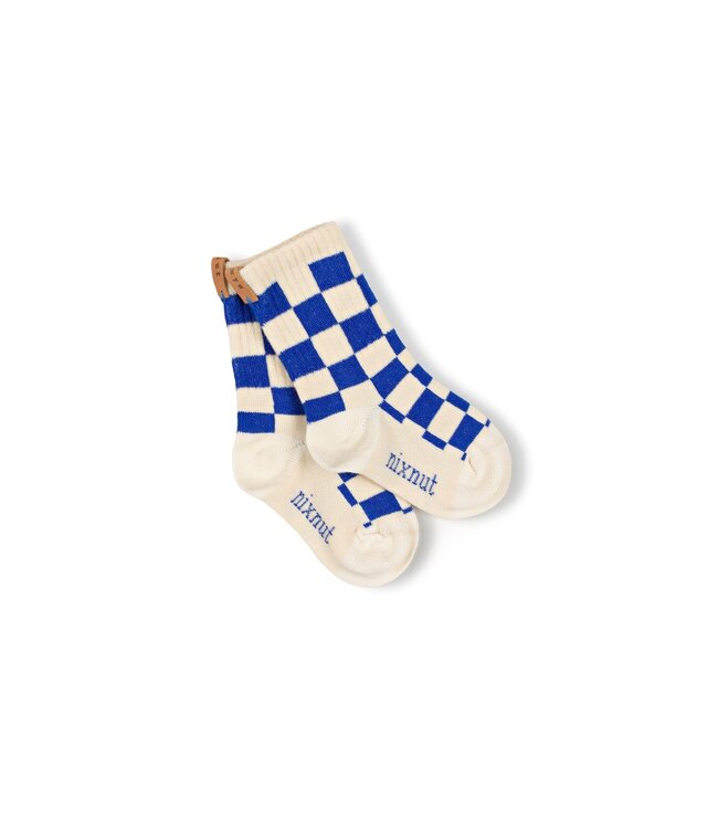 Deze Checkered Nixnut socks zijn vervaardigd van 100% zacht katoen. De sokken zijn uitgevoerd in een stoere geblokte print in blauwe en crème tinten en bieden dankzij de fijne stretch een optimaal draagcomfort. Het ontwerp is voorzien van het ingeweven Nixnut-logo en is aan de bovenzijde van beide sokken afgewerkt met het kenmerkende lederen Nixnut-label. Een stijlvol en comfortabel accessoire dat elke outfit compleet maakt.