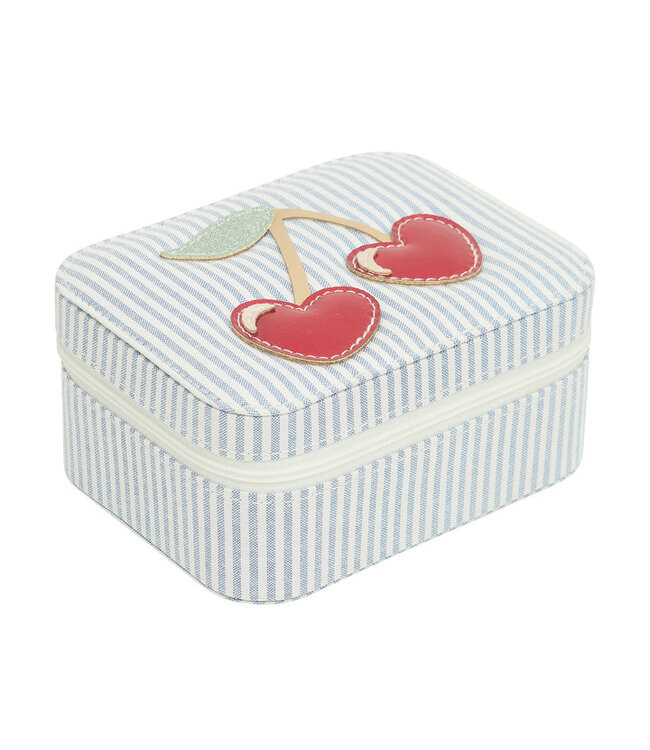 Blauw-wit gestreepte stof met kersendetails in glitter en metallic