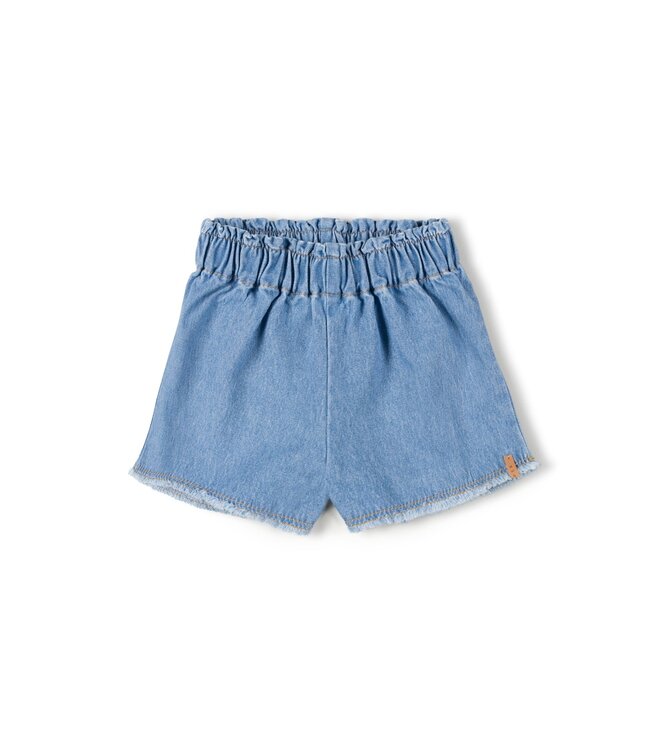 Deze Denim short is vervaardigd van 100% soepel katoen voor een hoog draagcomfort. Het shortje is uitgevoerd in een klassieke denimstof en is voorzien van een volledig elastische tailleband. Het ontwerp heeft een stoer karakter dankzij de specifieke afwerking aan de onderzijde van de broekspijpjes en is gedetailleerd met het kenmerkende lederen Nixnut-label. Een veelzijdig item dat moeiteloos gecombineerd kan worden met de tops en T-shirts uit de collectie.