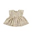 Het ontwerp heeft een zwierige rok die geplooid is aangezet onder de borst, wat zorgt voor een comfortabele en wijde valling. Aan de achterzijde bevindt zich een drukknoopsluiting bij de hals, waardoor het jurkje gemakkelijk aan- en uitgetrokken kan worden. De korte kapmouwtjes en de ronde hals maken de elegante look compleet.