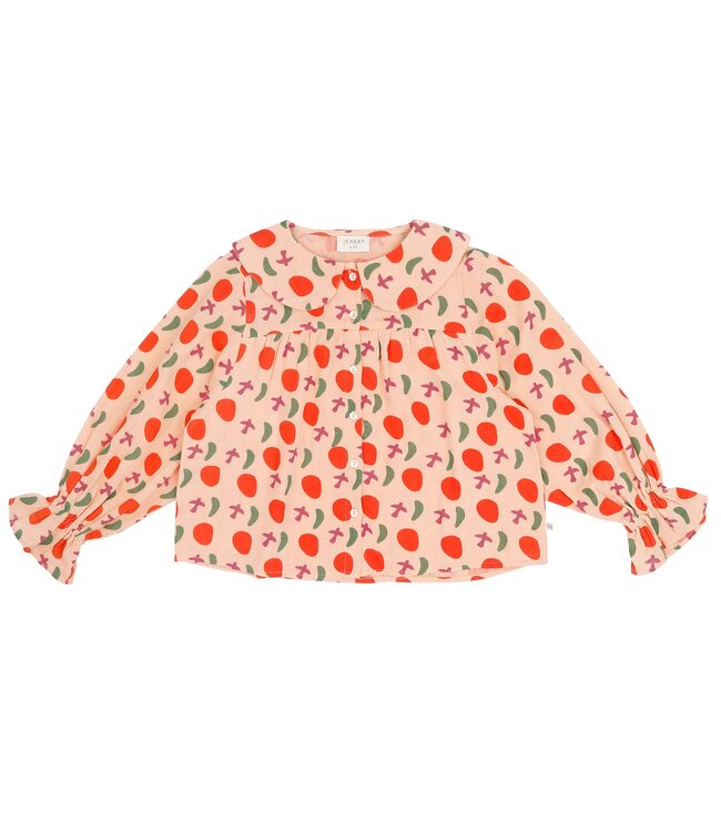 De Double gauze blouse is vervaardigd van 100% duurzaam katoen in een zachte dubbele gauze kwaliteit. De blouse is voorzien van een vrolijke 'all-over' print en heeft een klassieke knoopsluiting aan de voorzijde. Het ontwerp is afgewerkt met een ronde kraag en elastische boorden bij zowel de mouwen als de taille. Een comfortabel en functioneel kledingstuk voor elke dag.