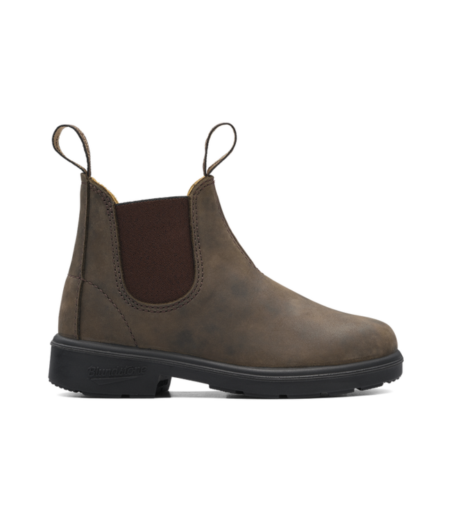 Robuuste Blundstone kinderboots, gemodelleerd naar de iconische Original #500 serie. Gemaakt van duurzaam, bruin premium leder met donkerbruine elastische zijpanelen. De grove zwarte zool biedt grip op elk terrein. Perfect voor elke kleine avonturier. Lees meer.