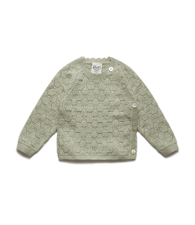 Het praktische kimono-model met knoopjes aan de zijkant maakt het aan- en uitkleden heel eenvoudig, omdat het vestje niet over het hoofdje van je kindje hoeft. In de frisse kleur Pistachio is dit een duurzaam en eerlijk geproduceerd kledingstuk dat comfort en een verfijnde, tijdloze stijl perfect combineert. De parelmoer-look knoopjes geven het vestje een extra luxe afwerking.