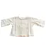 Het shirt is uitgevoerd in een tijdloze natuurlijke tint en heeft een comfortabele, losse pasvorm. Aan de achterzijde bevindt zich een knoopsluiting bij de hals, waardoor het shirt gemakkelijk over het hoofdje van de baby kan worden aangetrokken. De mouwen en de onderzijde zijn strak afgewerkt voor een minimalistische look.