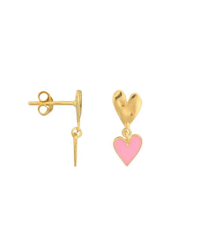 De Medium Two Hearts Stud Earring Light Pink Enamel is een paar stud oorbellen met twee hartjes onder elkaar.