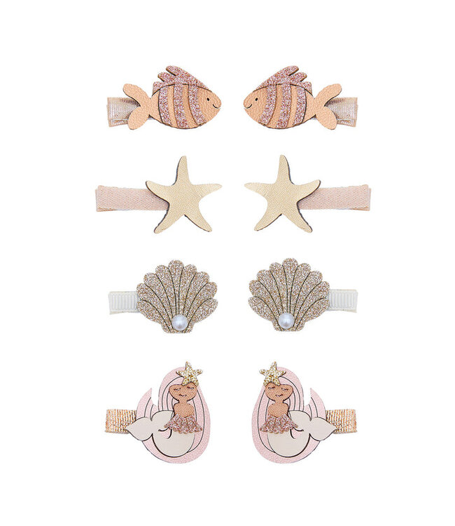 Voeg een vleugje onderwatermagie toe aan elk kapsel met deze prachtige neutrale clips! De glinsterende mix van glitters en metallic stoffen zorgt voor een subtiele, magische uitstraling voor kleine zeemeerminnen.