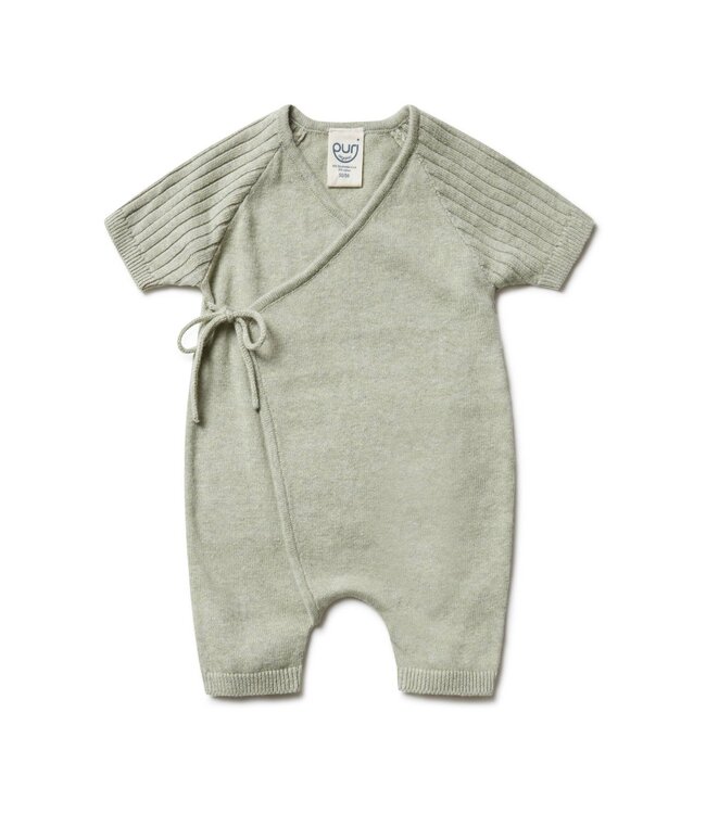 Het praktische overslagmodel met een striksluiting aan de zijkant is erg fijn voor pasgeborenen, omdat het pakje niet over het hoofdje hoeft. De korte mouwtjes zijn afgewerkt met een verfijnde ribstructuur, wat een klassieke uitstraling geeft. In de frisse kleur Pistachio is dit een duurzaam en eerlijk gemaakt kledingstuk dat comfort en stijl mooi combineert.