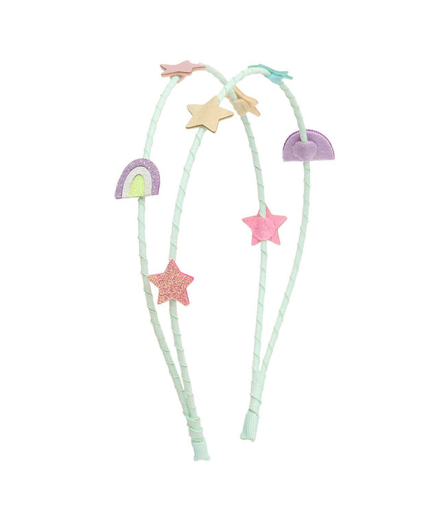 Versierd met 6 gewatteerde sterren en 2 regenboogjes.
