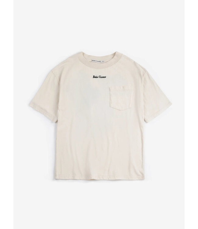 Maak een statement met het Rapid Radish oversized T-shirt. Dit shirt in een tijdloze ecru kleur heeft een minimalistische voorzijde met een subtiel Bobo Choses-logo en een handig borstzakje. De achterzijde steelt echter de show met een grote, artistieke 'Rapid Radish' print in levendige paarse en groene tinten. Dankzij de oversized pasvorm en verlaagde schoudernaden biedt dit shirt een moderne, nonchalante uitstraling en maximale bewegingsvrijheid. Vervaardigd van hoogwaardig katoen, voelt het T-shirt heerlijk zacht aan op de huid. Een creatief en comfortabel item dat perfect past bij een denim short of een van de kleurrijke broeken uit de collectie.