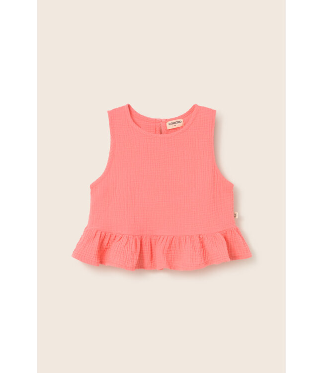 Deze top uit onze gauze-collectie is gemaakt van prachtig geweven katoen dat bekend staat om zijn delicate en luchtige structuur. De stof voelt ultrazacht aan op de huid en biedt een uitstekend ademend vermogen, wat essentieel is tijdens warme dagen. Het ontwerp heeft een elegante peplum die vanuit een gerimpelde naad zwierig uitloopt, wat zorgt voor een speels en vrouwelijk silhouette. Met de handige keyhole-opening aan de achterzijde is de top bovendien gemakkelijk aan- en uit te trekken. Vervaardigd uit 100% BCI en OEKO-TEX gecertificeerd katoen, combineert deze top duurzaamheid met een tijdloze, dromerige uitstraling.