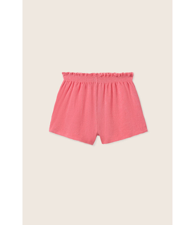 Deze short uit onze terry kids collectie is de perfecte combinatie van comfort en een sportieve look. De fluffy badstof voelt heerlijk zacht aan en heeft een gladde, gelijkmatige binnenzijde die zorgt voor een fijn gevoel op de huid. Dankzij de gesmokte tailleband sluit de short altijd perfect aan, terwijl de zijsplitjes zorgen voor extra bewegingsvrijheid tijdens het spelen of een dagje aan het strand. De zorgvuldige afwerking van de zomen en splitten geeft het item een hoogwaardige uitstraling. Een luchtige en zachte must-have voor de zomer, waarin comfort en stijl moeiteloos samenkomen.