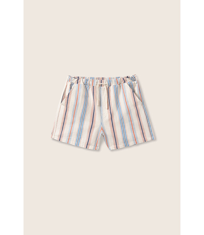Deze Bermuda short voor jongens is de ideale combinatie van een klassieke pasvorm en modern draagcomfort. Gemaakt van hoogwaardig, 100% biologisch katoen met OEKO-TEX en GOTS-certificering, biedt de stof een natuurlijk ademend gevoel dat heerlijk zacht aanvoelt op de huid. De elastische tailleband met verstelbaar trekkoord zorgt voor een perfecte pasvorm tijdens elke activiteit. Verfijnde details zoals de "Cozmo" voering in de zijzakken en de achterzak met diagonale strepen geven de short een unieke, stijlvolle uitstraling. Een duurzame en comfortabele keuze voor warme dagen waarop vrijuit bewogen moet kunnen worden.