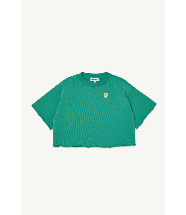 Deze Sweat Top in de kleur Bottle Green is vervaardigd van een zachte, organische katoenen diagonaal jersey fleece. Het ontwerp combineert een oversized pasvorm met een cropped lengte en is voorzien van een geribde halslijn. De mouwen en de onderzijde zijn afgewerkt met een onafgewerkte zoom (cut hem), wat bijdraagt aan een moderne en ontspannen uitstraling. Door de garment-dye techniek voelt het materiaal extra zacht aan op de huid en krijgt het kledingstuk een unieke kleurdiepte. De top is afgewerkt met een geborduurd logo op zowel de voor- als de achterzijde en is verantwoord geproduceerd in Portugal van 100% biologisch katoen.
