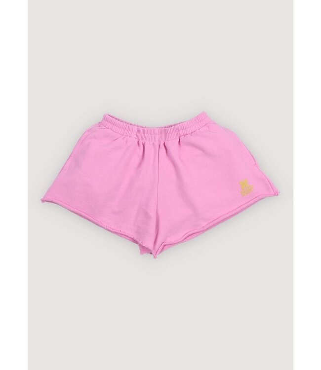 Klaar voor de zon! Deze roze shorts van The New Society zijn de ideale mix van sportief en stijlvol. De broek is uitgevoerd in een zachte jersey kwaliteit en heeft een nonchalante uitstraling dankzij de onafgewerkte pijpjes. Met de brede elastische tailleband zit de short altijd comfortabel, of er nu gespeeld, gerend of ontspannen wordt. Het kleine gele logo op de zijkant zorgt voor die herkenbare, moderne touch. Combineer hem met de bijpassende sweater voor een complete 'comfy-cool' set of met een fris wit T-shirt voor een zomerse dag.