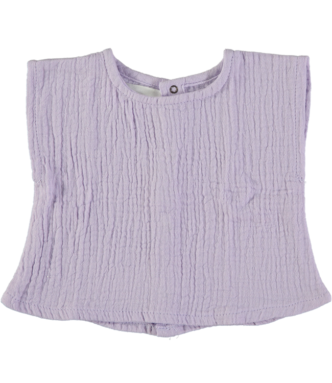 De Pequeno Tocon Top muslin lilac is een vrolijk en comfortabel item voor warme dagen. Deze mouwloze top is gemaakt van muslin, een ademende hydrofiele katoen met de kenmerkende lichte textuur die zacht aanvoelt op de huid. De lila kleur geeft het topje een frisse en moderne uitstraling.