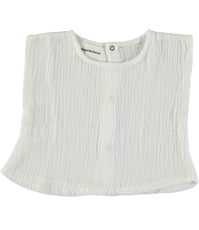 De Pequeno Tocon Top muslin wit is een fris en tijdloos item voor de warme zomerdagen. Deze mouwloze top is gemaakt van muslin, een ademende hydrofiele katoen die bekend staat om zijn zachte, gewerkte textuur. De stof is licht en ademend, wat het ideaal maakt voor de gevoelige babyhuid.