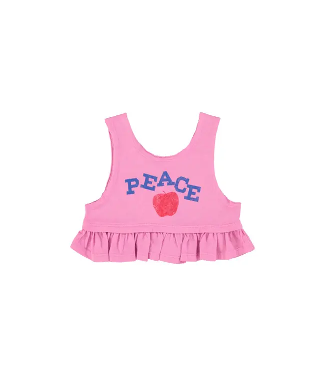 Deze roze top combineert een unieke textuur met een lieflijk design. De top is uitgevoerd in 100% katoen jersey flamé en valt op door de speelse ruches die volledig rondom de taille lopen. Het kledingstuk is gedetailleerd met een vrolijke print aan de voorzijde en een karakteristiek sterren-logo op de achterkant. Vervaardigd in Portugal, biedt deze top een zachte pasvorm en duurzame kwaliteit voor elke dag. Een modieus en comfortabel item dat elke outfit een vrolijke touch geeft.