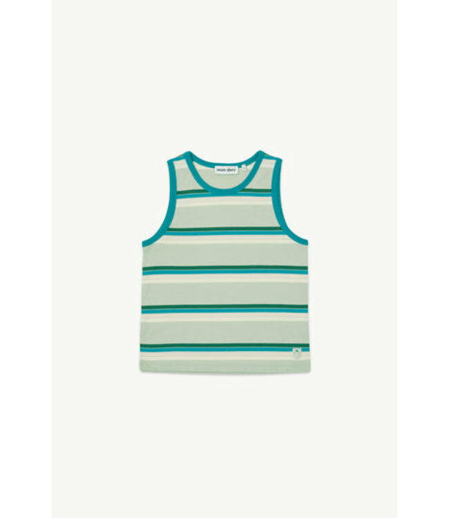 Deze mouwloze zomertop is vervaardigd van een hoogwaardige, garengeverfde jersey van 100% biologisch katoen. Het ontwerp heeft een losse, sportieve pasvorm met ruime armsgaten en een ontspannen silhouet voor een nonchalante uitstraling. De halslijn en armsgaten zijn afgewerkt met een bies voor een klassieke retro-finish. De kenmerkende strepen zijn geweven van kwalitatieve garens, wat zorgt voor kleurvastheid en een zachte textuur. Dit item is afgewerkt met een geborduurd logo-detail en is verantwoord geproduceerd in Portugal.